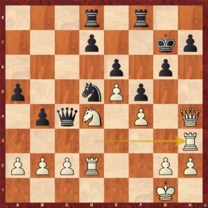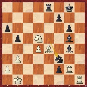 Po zahraném tahu 1. ... Vac8? přišel totiž okamžitě kombinační úder na zdánlivě nejsilnější bod černé pozice 2. Jxf5!! +- a černá pozice se hroutí!