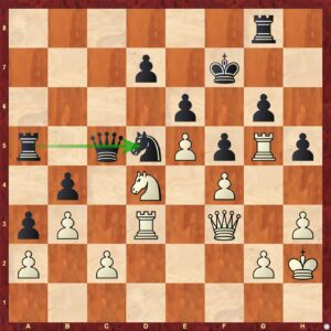 Vtip je v tom, že jakékoli braní jezdce f5 obnažuje body h5 či d5 a to je pro černého konečná ...