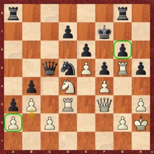 Ale věc není tak jednoduchá. On totiž vypadá velmi zajímavě i tah a6-a5!? Proč? Není to zpronevěření pravidlu, že máme hrát tam, kde jsme silnější? Pro objasnění, proč jsem zvažoval tah a5 malinko odbočím.