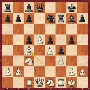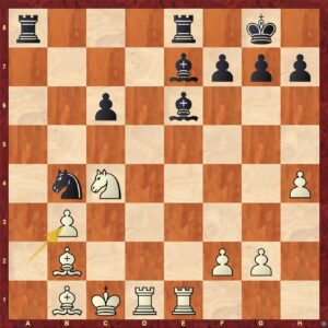 Zajímavá pozice vzniklá z výměnné španělské hry. Bílý se mírně ukvapil uzavřením centra 1.d5?! Černý musí hrát aktivně a právě teď je ten správný čas! Nejlepší je okamžité 1. ... g5! s protihrou.