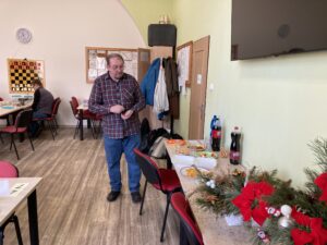 Zde popis Jak vidno, o oddílovém přeborníkovi se rozhodně začátkem ledna. Vše má ve svých rukou dvojice Lojza Bartoš a Zeněk Straka. Lojza v průběhu turnaje ztratil pouhou půlku. Pokud v posledním utkání zvítězí, má už zajištěný oddílový titul. Pokud se Zdeňkem prohraje, dostane šanci Vladimír Chalupecký, který musel zatím sklonit svého krále pouze jednou a to právě s Lojzou Bartošem. Při remíze si nejsem jistý, ale vzhledem ke vzájemné partii myslím, že přeborníkem bude Lojza.